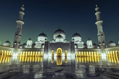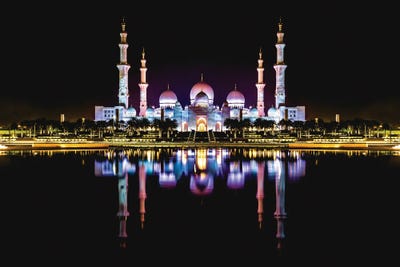 Dubai Temple Mosque Nighttime Reflections