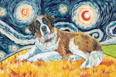 Saint Bernard On A Starry Night