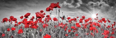 Idyllic Field Of Poppies With Sun | Panorama