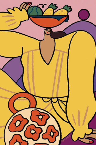A Woman In Yellow And Blue With Guitar