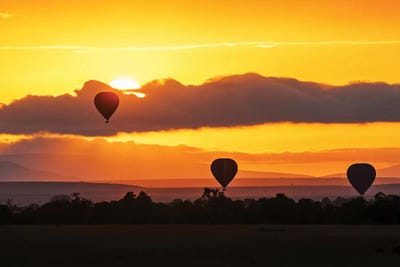 Hot Air Balloons In Surise Orange Africa Sky