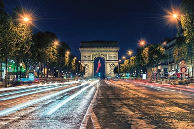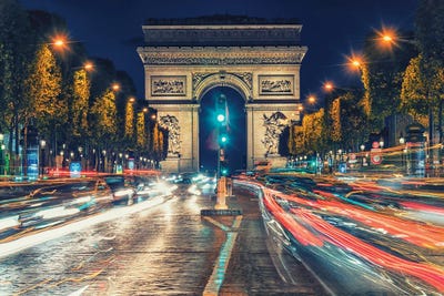 Arc de Triomphe With Blurred Motion Car Lights, Paris, Ile-de-France, FrancePanoramic Images