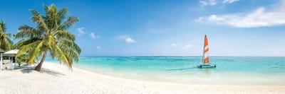Tropical Seascape With A Lone Palm Tree, Republic Of MaldivesPanoramic Images
