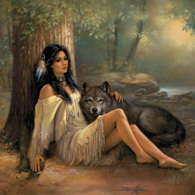 Spirit Seeker Maiden-Native American And Wolves