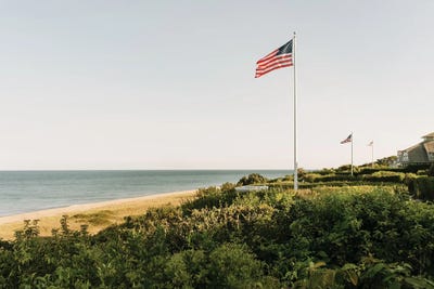 Nantucket Coast And American Flags