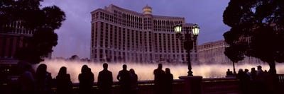 Low angle view of a hotel lit up at night, The Strip, Las Vegas, Nevada, USAPanoramic Images