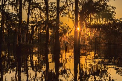 USA, Louisiana, Atchafalaya National Wildlife Refuge. Sunrise on swamp. Jaynes Gallery