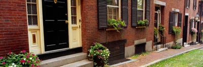 Potted plants outside a house, Acorn Street, Beacon Hill, Boston, Massachusetts, USAPanoramic Images