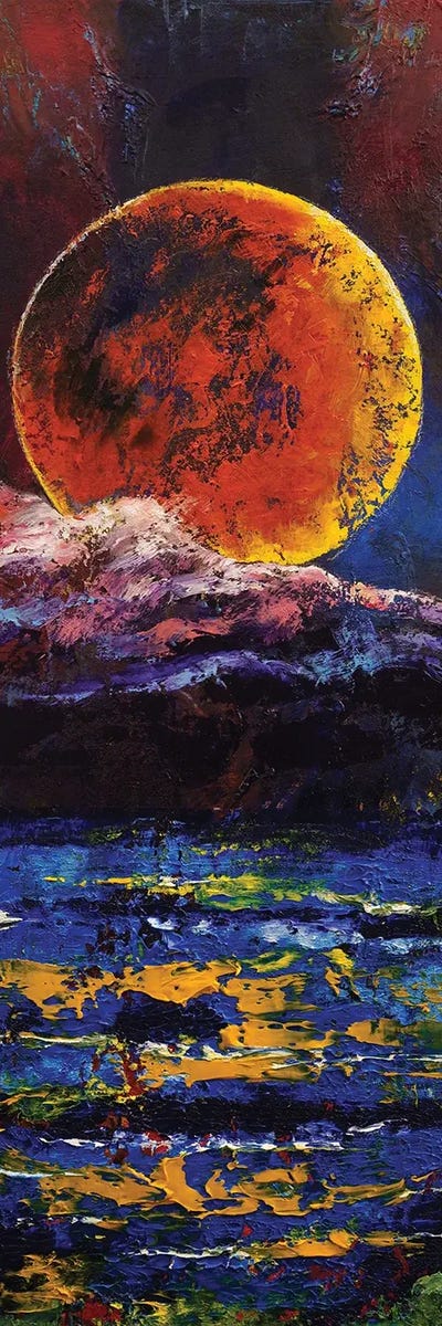 Blue White Full Moon Seascape