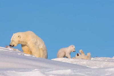 A Pair Of Young Polar Bear Cubs With Their Mother, Coast Of ANWR, AlaskaHugh Rose