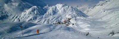 Tourists skiing in a ski resort, Sankt Anton am Arlberg, Tyrol, AustriaPanoramic Images