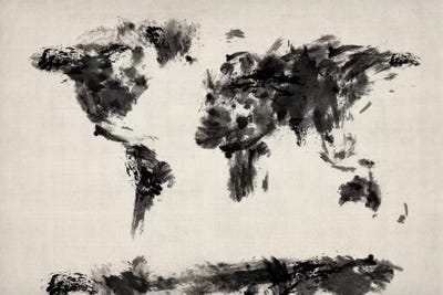 Grayscale Watercolor Map Of The World