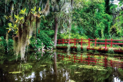 Little Red Footbridge Over A Pond, Magnolia Plantation, Charleston, South CarolinaGeorge Oze