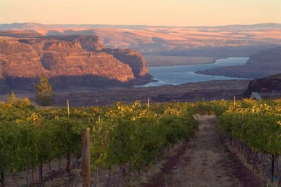 Columbia River With Cave B Vineyard In The Foreground, Grant County, Columbia Valley AVA, Washington, USA