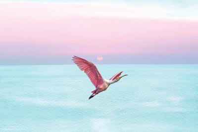 Roseate Spoonbill And Ocean Sky At Sunset