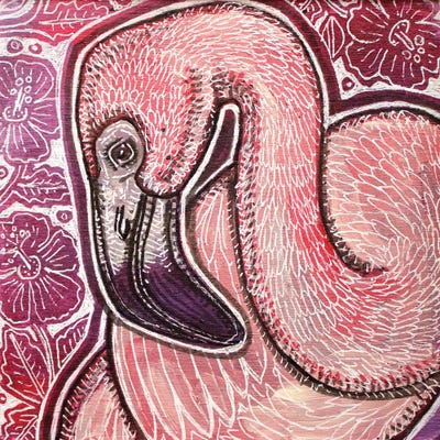 Pink Flamingo With Flowers