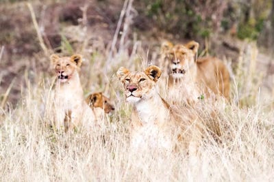 Lion Pride Lying In Tall Grass