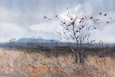 Blue And Gold Landscape, Watercolor
