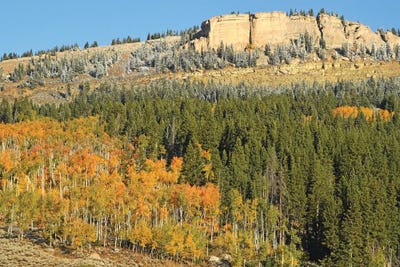 Bighorn Mountains With Aspens And Snow