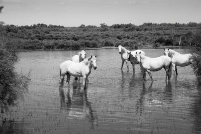 Camargue White Horses In A Lagoon Along DLXXXVA, Camargue, France