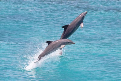 An Atlantic Bottlenose Dolphin Leaps From The Ocean Off Curacao