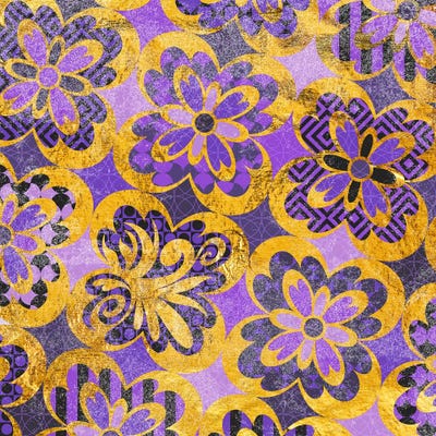Flourished Floral in Gold & Purple Patterns