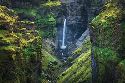 Moody Green Canyon In Iceland