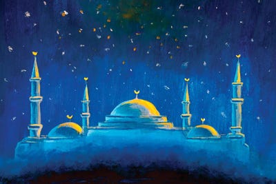 Night Mosque, Hand Drawn Muslim Sight