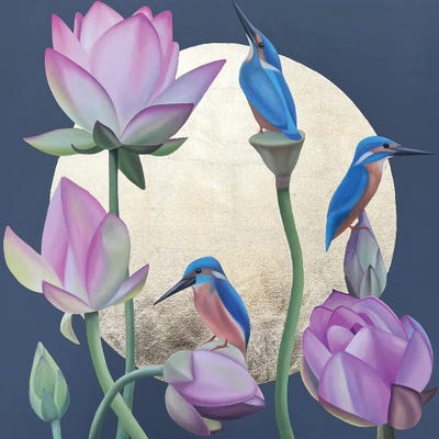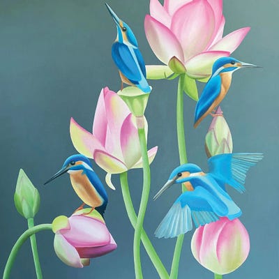 Kingfisher Bird On A Pink Lotus Flower