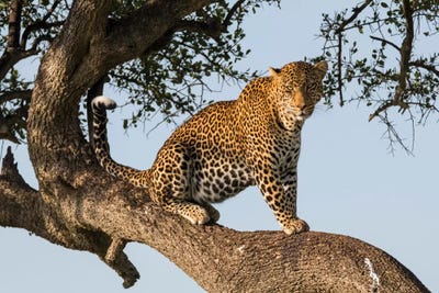 Africa, Kenya, Masai Mara National Reserve, African Leopard in tree.