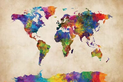 Bright Watercolor Map Of The World