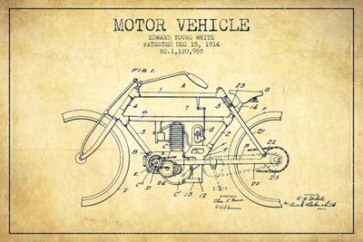 Harley-Davidson Motorcycle Fender Patent Application Blueprint (Red)Aged Pixel