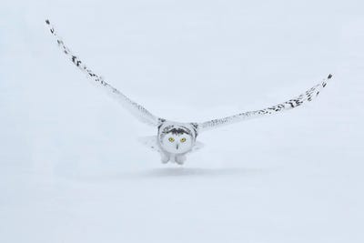 Great Horned Owl Perched In Tree Dusted With Snow, British Columbia, Canada IITim Fitzharris