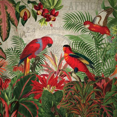 Red Parrots In Vintage Jungle