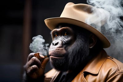 Gorilla Smoking Portrait, Hat On Head And Elegantly Dressed, AnimalAdrian Vieriu