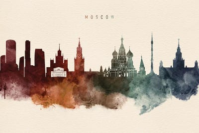 Moscow Skyline In Watercolor Background