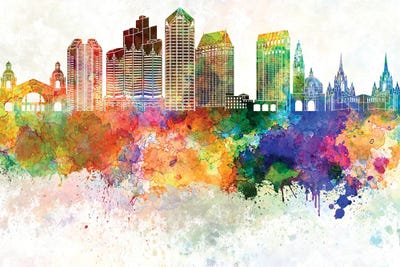 San Diego II Skyline In Watercolor Background