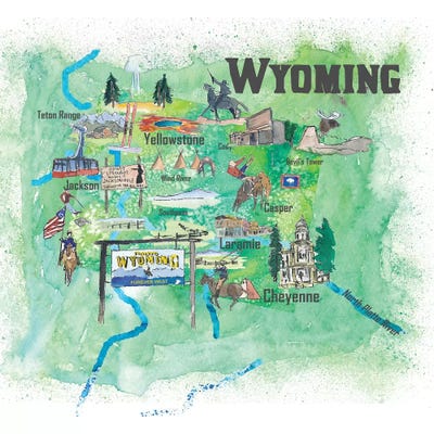 USA, Wyoming Illustrated Travel Poster