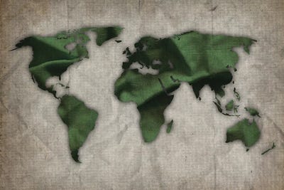 Dark Green And Green World Map On Old Paper