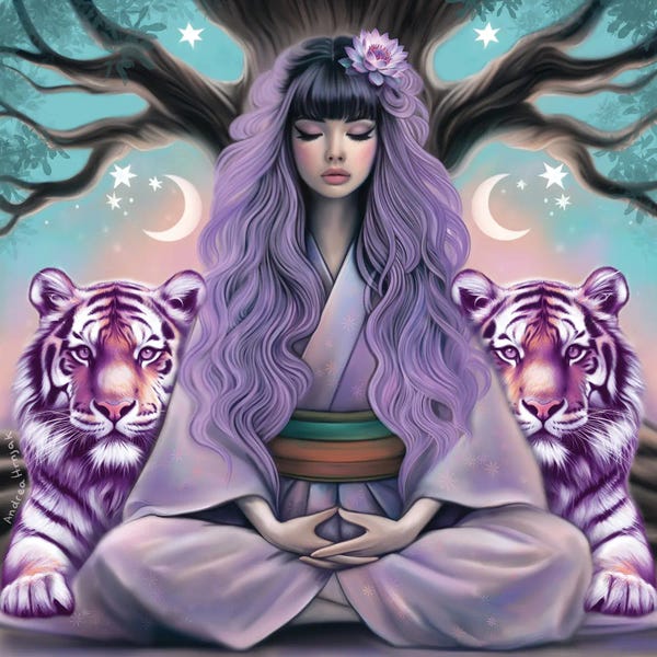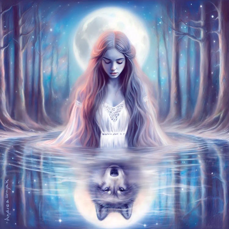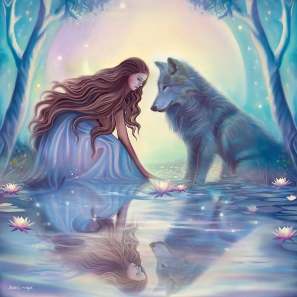 Andrea Hrnjak finds inspiration in the rich tapestry of mythology and the enigmatic allure of the occult. Drawing from her homeland's tales of witches and otherworldly beings, her art serves as a bridge between the known and the mysterious. In her surreal and dreamy scenes, the feminine form dances in graceful harmony with nature, while spirit animals guide viewers through hidden realms of the imagination. Beyond art, she's deeply committed to animal welfare, advocating for all living creatures.