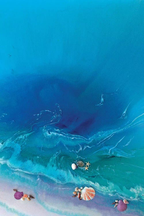 Marie Antuanelle blends her love for crystals, nature, and luxury into her acrylic, alcohol ink, and mixed media artworks. Inspired by her childhood surrounded by crystal rocks and her connection to her late father, Antuanelle incorporates seashells, crystals, and resin to create coastal-themed art that resonates with the energy and memories of her clients. Passionate about ocean conservation, Antuanelle's work intentionally erases human footprints from the beaches she paints.