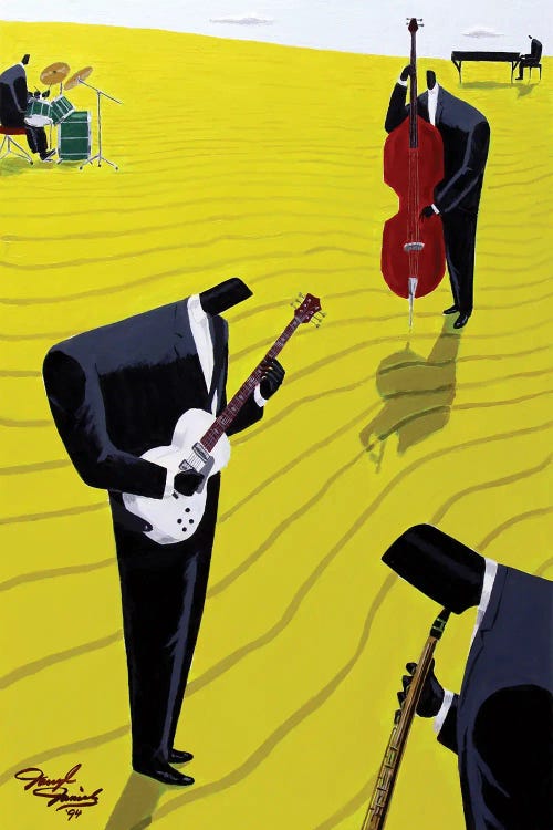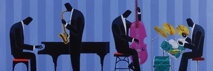 Darryl Daniels is driven by colors, patterns, or backgrounds in movie scenes that can trigger new ideas. While jazz musicians are a central theme in his work, the inspiration is always visually driven. Daniels describes his layered art as a blend of abstract, figurative, stylized, surrealist, and graphic design elements. A supporter of The Jazz Foundation of America, Daniels donates a portion of his proceeds to help the musicians who enrich our lives.