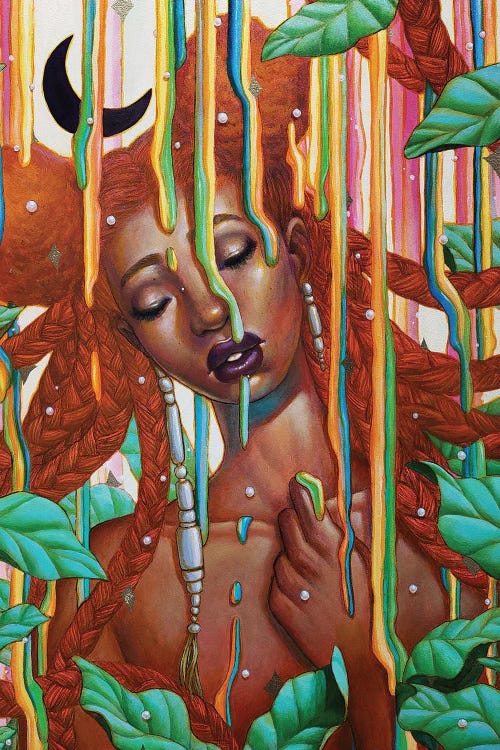 Ejiwa Ebeneb's work explores themes of fantasy, whimsy, and figurative expression. Ebenebe draws inspiration from the curiosity that fuels their creativity, fairytale storybooks from childhood, and the vibrant experiences of navigating life as a Black, queer individual. Embracing a bright and organic style, their art invites viewers to explore surreal, colorful worlds. A strong advocate for change, Ebenebe works with Brink Literacy Project, believing in the transformative power of storytelling.