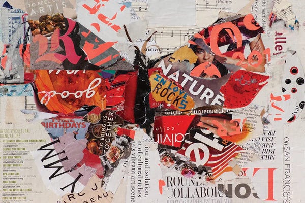 Jamie Pavlich-Walker's art is a dynamic fusion of architecture and fashion, deeply inspired by the Victorian homes of her small-town upbringing and the urban landscape of San Francisco. Working with mixed mediums, Pavlich-Walker creates textured €œpaintings€ using paper from magazines, newspapers, and found materials. Passionate about giving back, she regularly donates art to ""Face to Face,"" a nonprofit supporting the HIV community, among other causes.