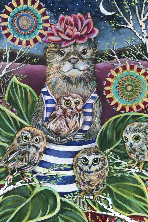 Linnea Tobias is an artist who works with multiple mediums to create vibrant and illustrative pieces. Her art features animals, birds, gardens, and forests, drawing inspiration from the natural world, folklore, patterns, and mythology. Tobias's colorful storytelling style is designed to inspire joy in those who view her work. Her art invites viewers into a whimsical world where nature and imagination intertwine. Aside from art, she's passionate about animal welfare, supporting the Humane Society.