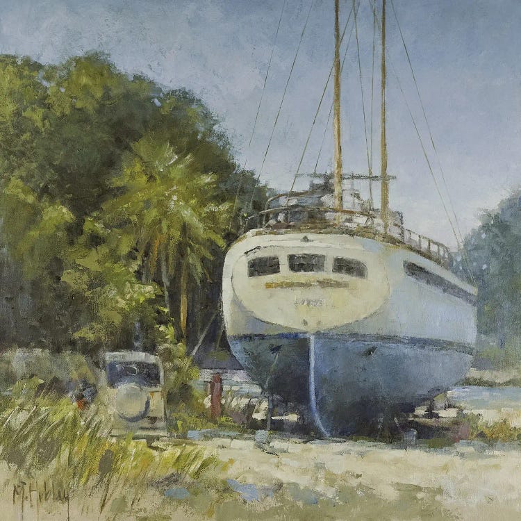 Mary Hubley captures the beauty of landscapes, outdoor nature scenes, cars, boats, marsh critters, and figures. Hubley draws inspiration from walks in the woods, country rides, and trips to the harbor, focusing on the small details in the landscape, such as fish in streams, garden paths, and the interplay of sunlight and shadow on tree trunks. Her impressionistic paintings are realistic at their core, but her skilled brushwork and palette knife techniques add rugged edges and lively details.