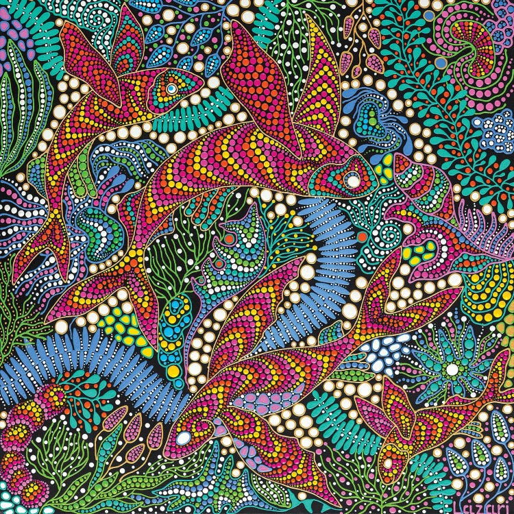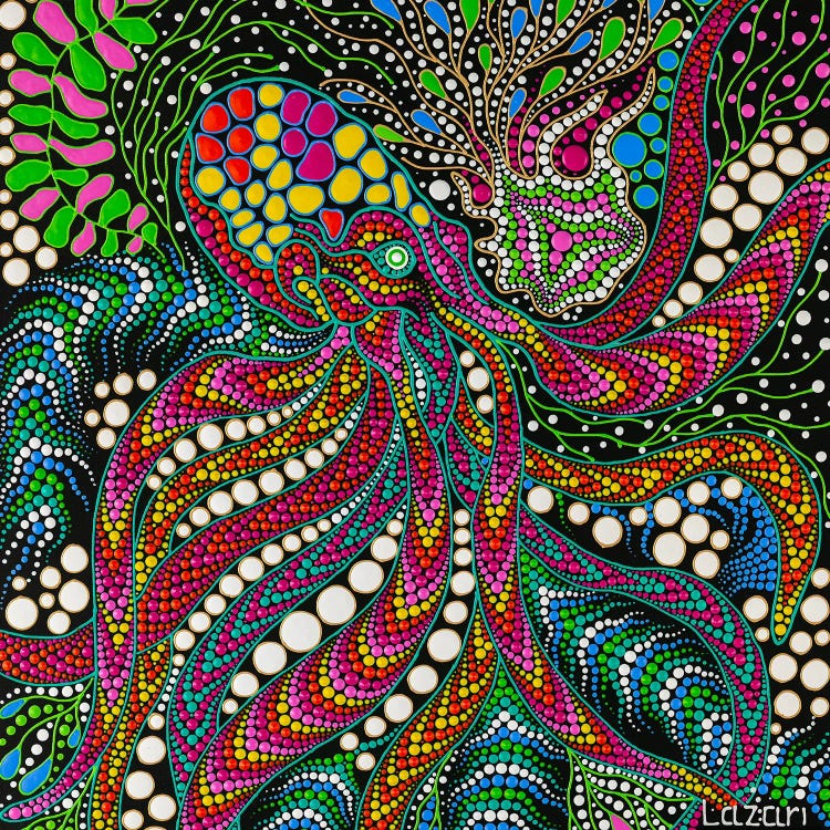 Oxana Lazari's art is a blend of nature's beauty and cosmic wonder. Specializing in acrylic, her subjects span from animals and botanical elements to celestial landscapes and underwater worlds. Lazari's unique use of dot art, a pointillism technique, creates mesmerizing, intricate patterns that blend colors and shapes into cohesive, textured images. Inspired by the flora, fauna, and the universe, her work evokes both awe and tranquility. Outside of art, she's passionate about animal rescue.