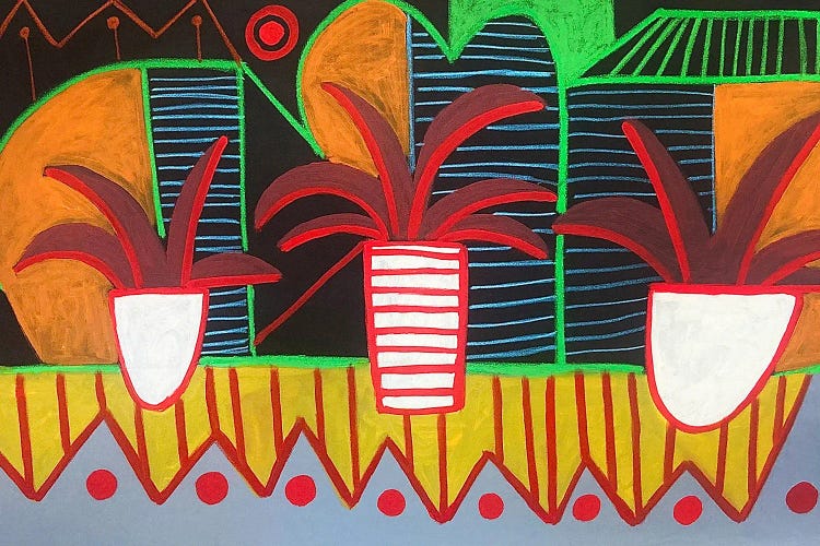 R.A. Langley creates powerful works that balance control and spontaneity, blending bold abstraction with hints of nature, form, and design. Influenced by artists such as Picasso, Basquiat, and DeKooning, Langley’s art channels movement, color, and contrast into dynamic compositions filled with emotion and rhythm. His pieces reflect both thoughtful precision and expressive freedom. Dedicated to giving back, Langley supports Habitat for Humanity through his creative journey.