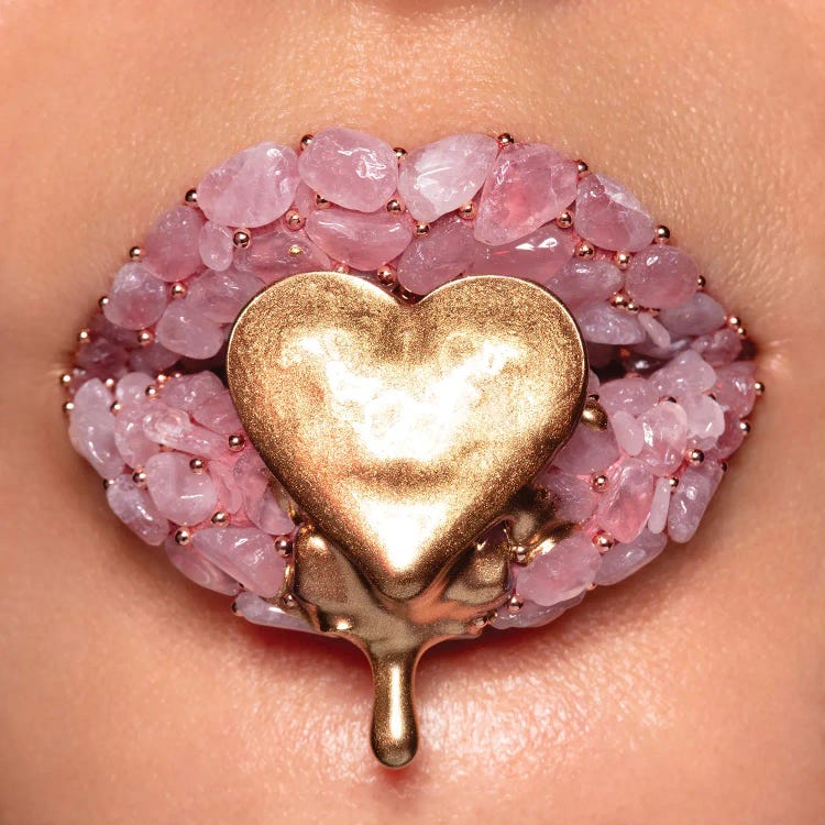 Vlada Haggerty, a visionary in photography and mixed media, transforms everyday objects into stunning works of art. With lips as her canvas, she crafts intricate pieces using makeup products, communicating her soul's message to the world. Haggerty aims to bring joy and shed light on important issues close to her heart. Her technique, blending lip painting with decorative elements, creates mesmerizing compositions. Beyond art, she's deeply involved with Kindred Spirits Care Farm.