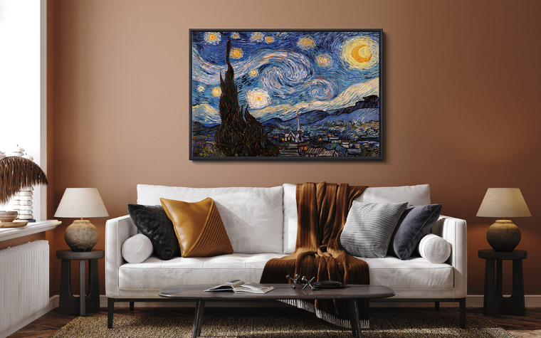 the starry night art in living room